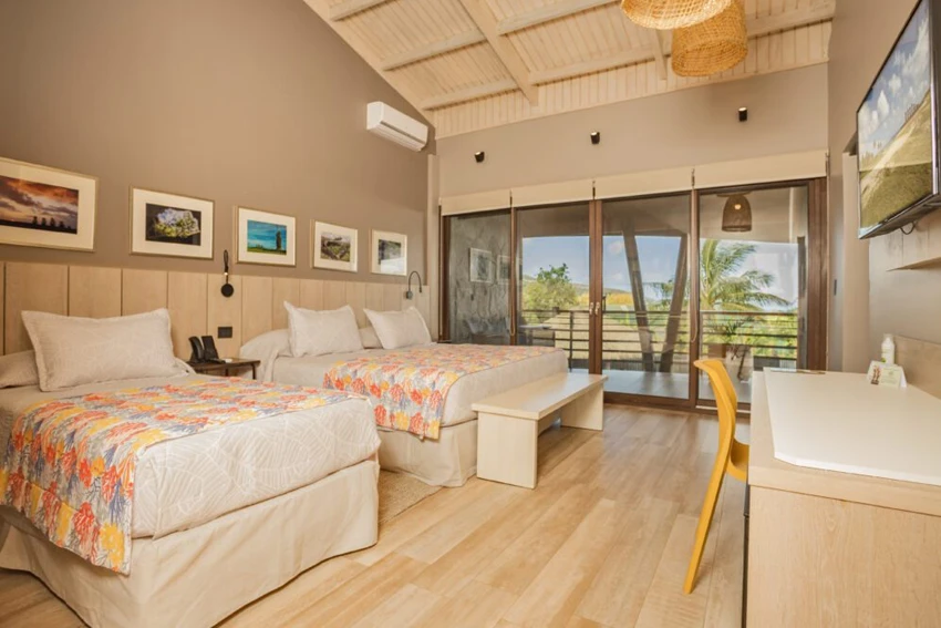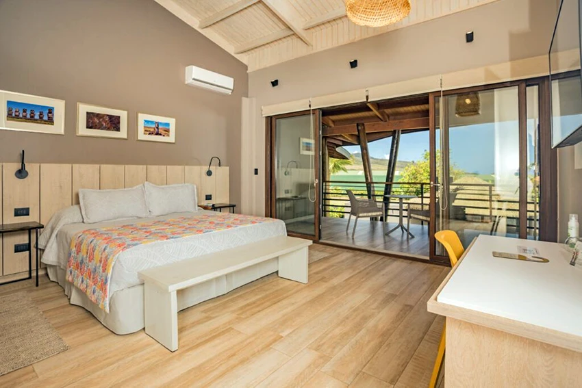 Habitaciones para compartir en familia y disfrutar de la magia de Rapa Nui, un espacio en el que convergen elementos característicos de la isla, como la piedra, la madera y el mar.